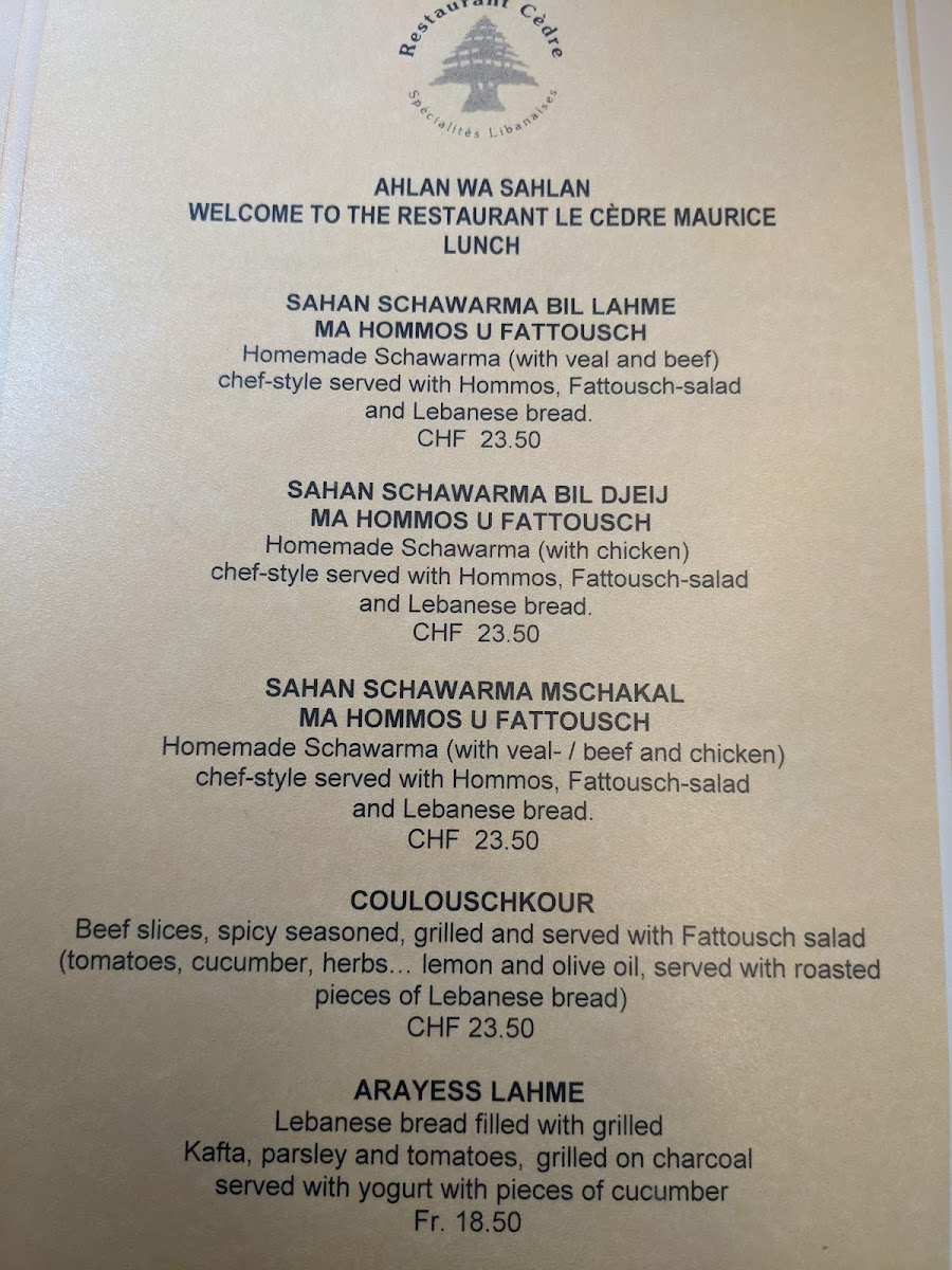 Welcome to Le Cedre, a charming Lebanese restaurant nestled in the heart of Zurich. Located at Nuschelerstrasse 31, this cozy spot is known for its authentic Lebanese cuisine and warm atmosphere. The menu features a vibrant selection of flavors, including delectable mezze like hummus and baba ganoush, alongside perfectly grilled meats. Guests rave about the delicious kafta and mixed grill dishes, which showcase the essence of Lebanese culinary artistry.